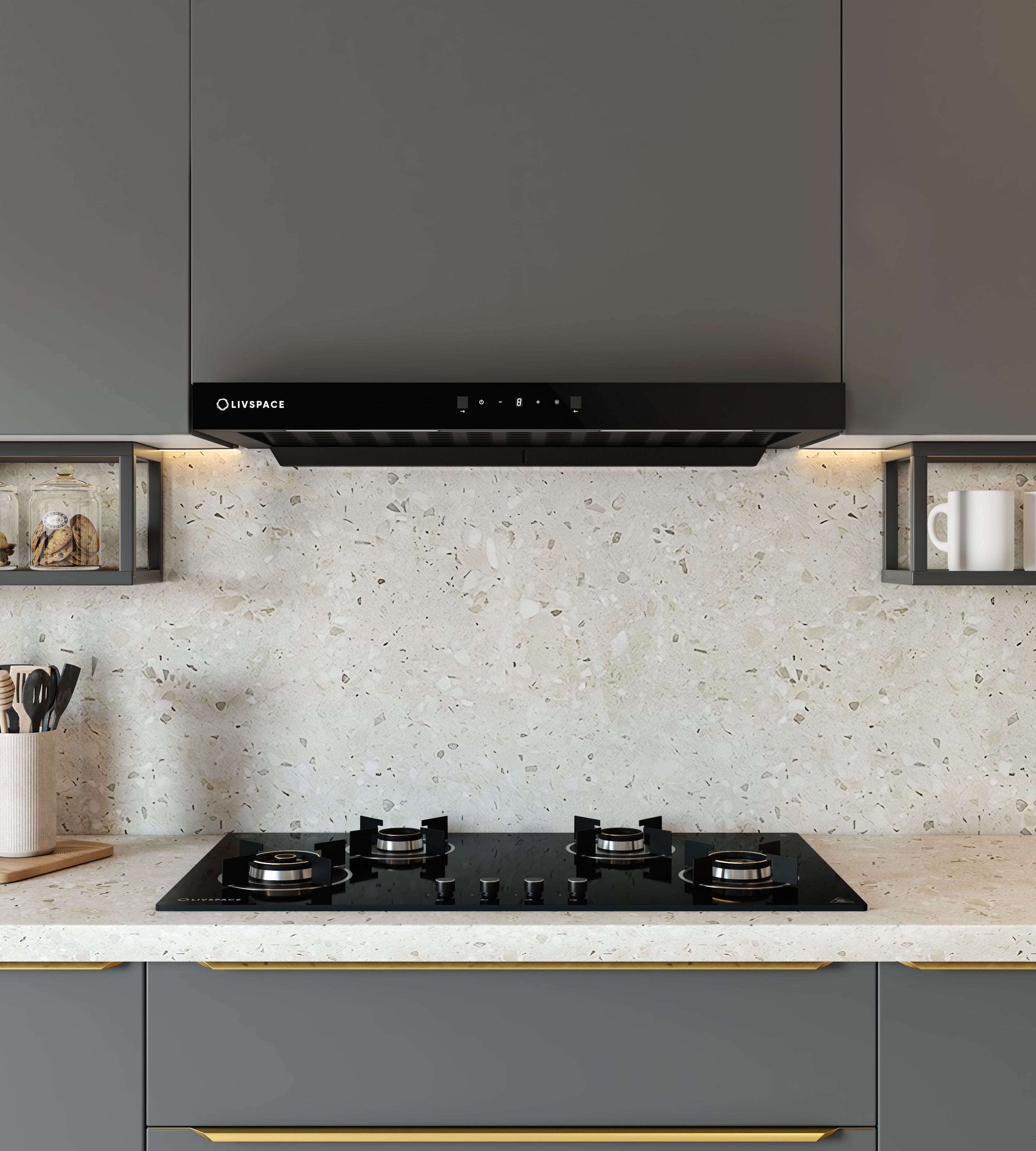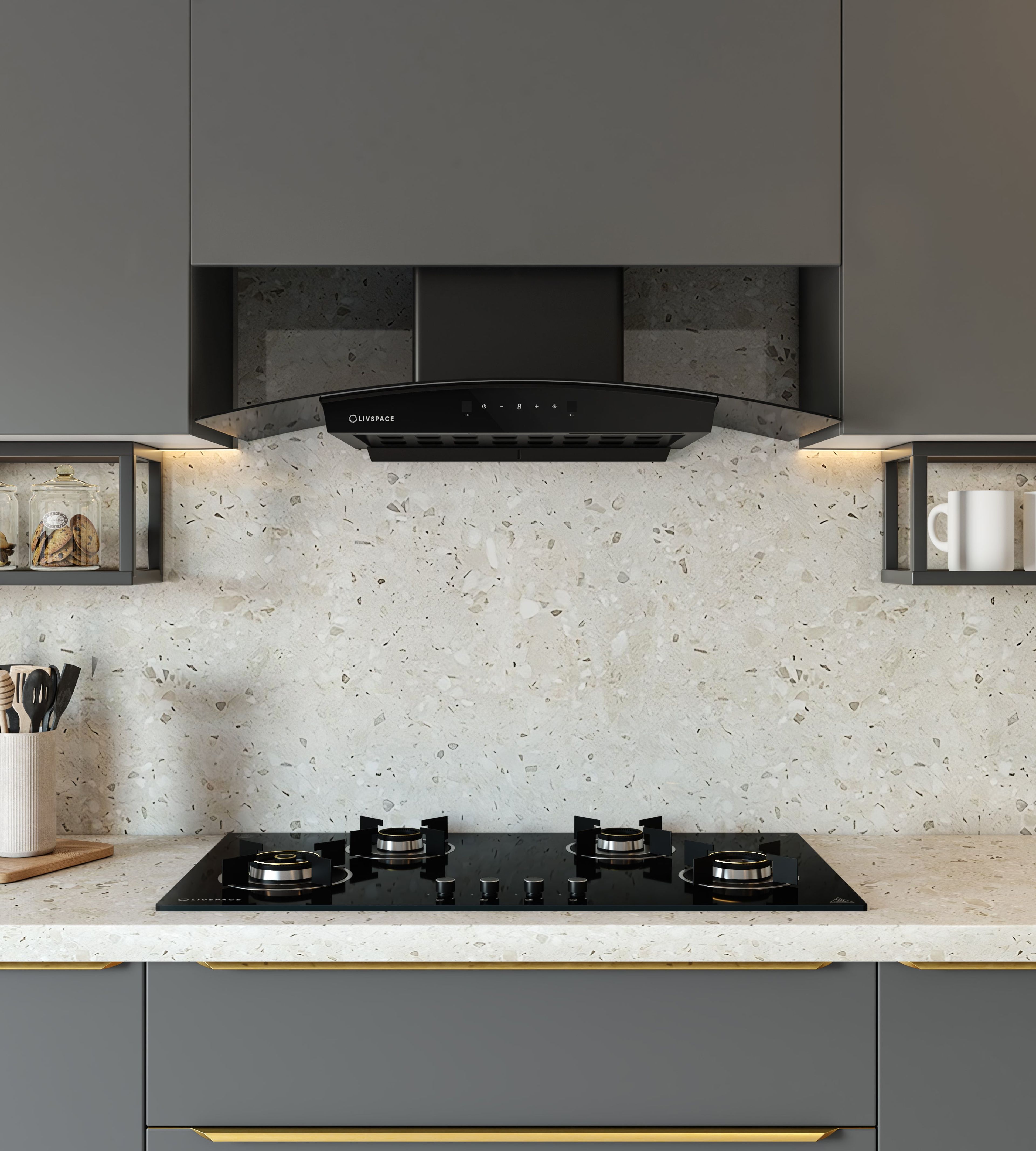 Intellia by Livspace AutoClean Curve Shape BLDC chimney 600mm size 1600m3/h suction power (Ducted) | Intellia CH T 60