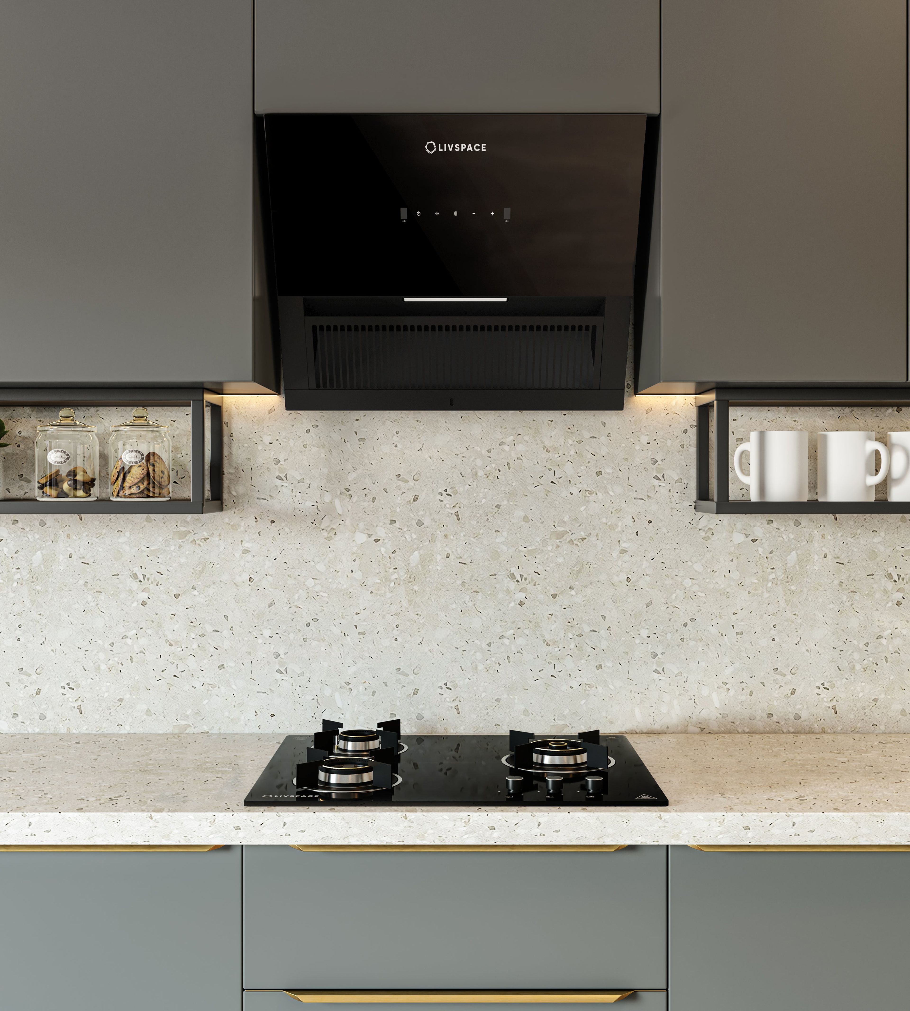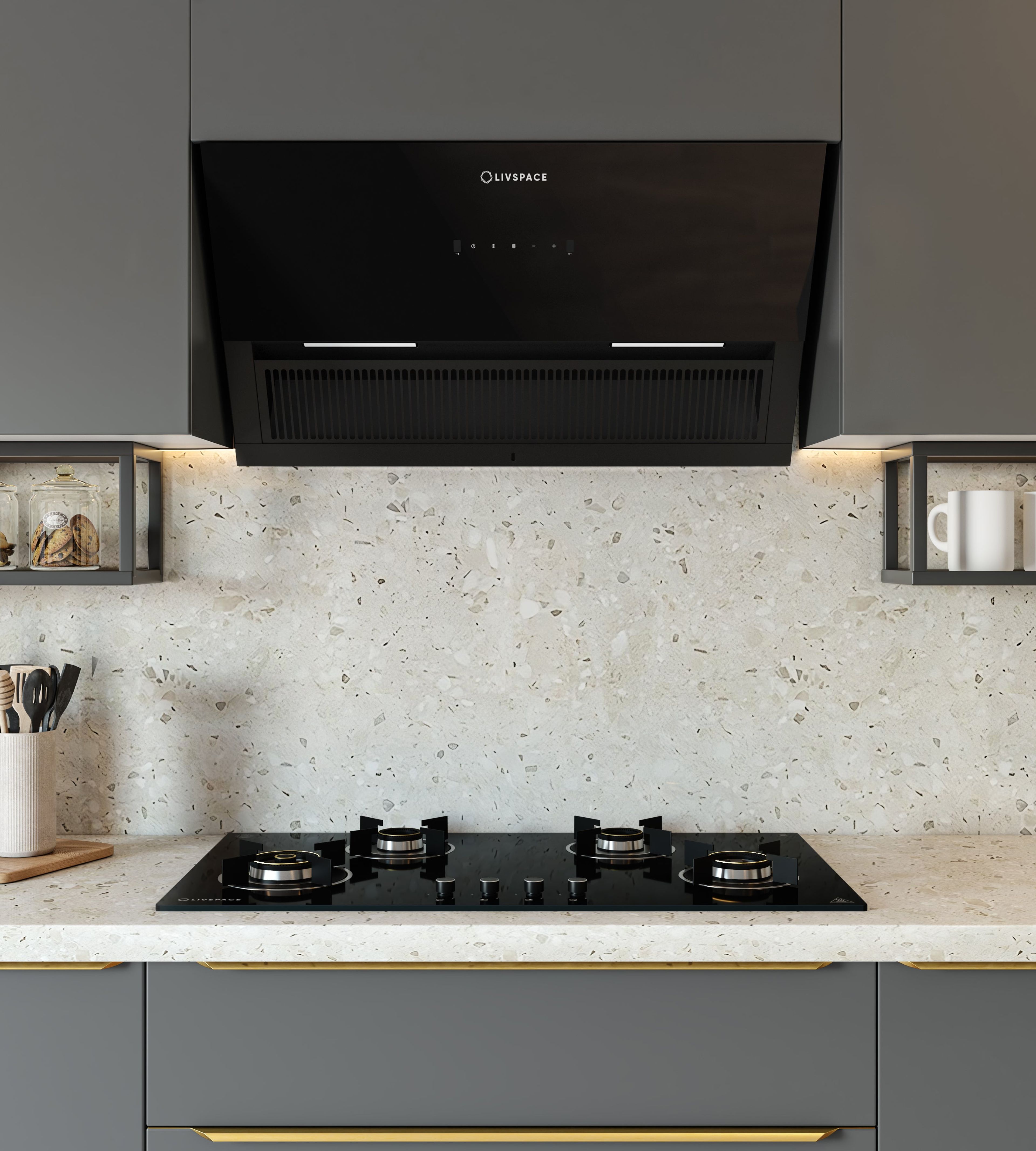 Intellia by Livspace 4 Brass Burner 900mm with Auto Ignition Matt finish Hob | Intellia HB 4B M 90